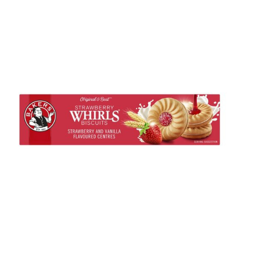 WELKOM USAin stockDelight in the irresistible taste of Bakers Strawberry Whirls – light, golden biscuits filled with a smooth, strawberry-flavoured cream. Perfectly ...