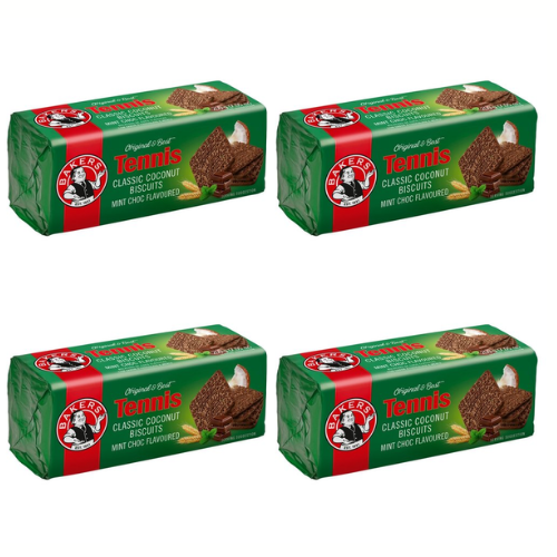 WELKOM USAOnly 8 left!Indulge in the perfect combination of rich chocolate and refreshing mint with Bakers Tennis Choc Mint. Each 200g pack delivers that satisfying crun...